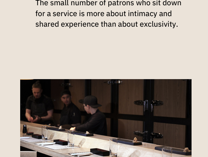 'Omakase' is a coveted dining experience. The small number of patrons who sit down for a service is more about intimacy and shared experience than about exclusivity.